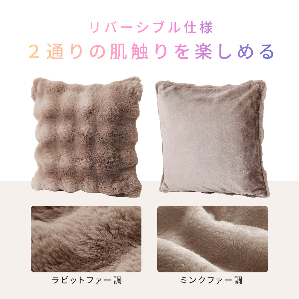 2通りの肌触りが楽しめる、とろけるような肌触りのクッションカバーが、リビングや寝室を心地よい空間に変えてくれます。