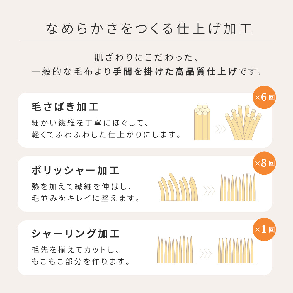 人気の「mofua ふんわりもこもこ毛布」と同素材・同色なので、お部屋のトータルコーディネートが簡単に叶います。ベッドルームだけでなく、ソファやリビングにも置いて、どこでもmofuaの世界観を体感してください。