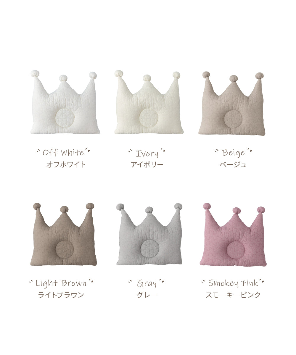 もこもことしたキルティング生地と3種類のデザインが可愛い、赤ちゃん用のまくら。中央には丸いステッチが入ることでくぼみができ、赤ちゃんの頭を優しく支えてくれます。綿100%生地だから肌触りもやさしく、デリケートな赤ちゃん肌にも安心して使えます。