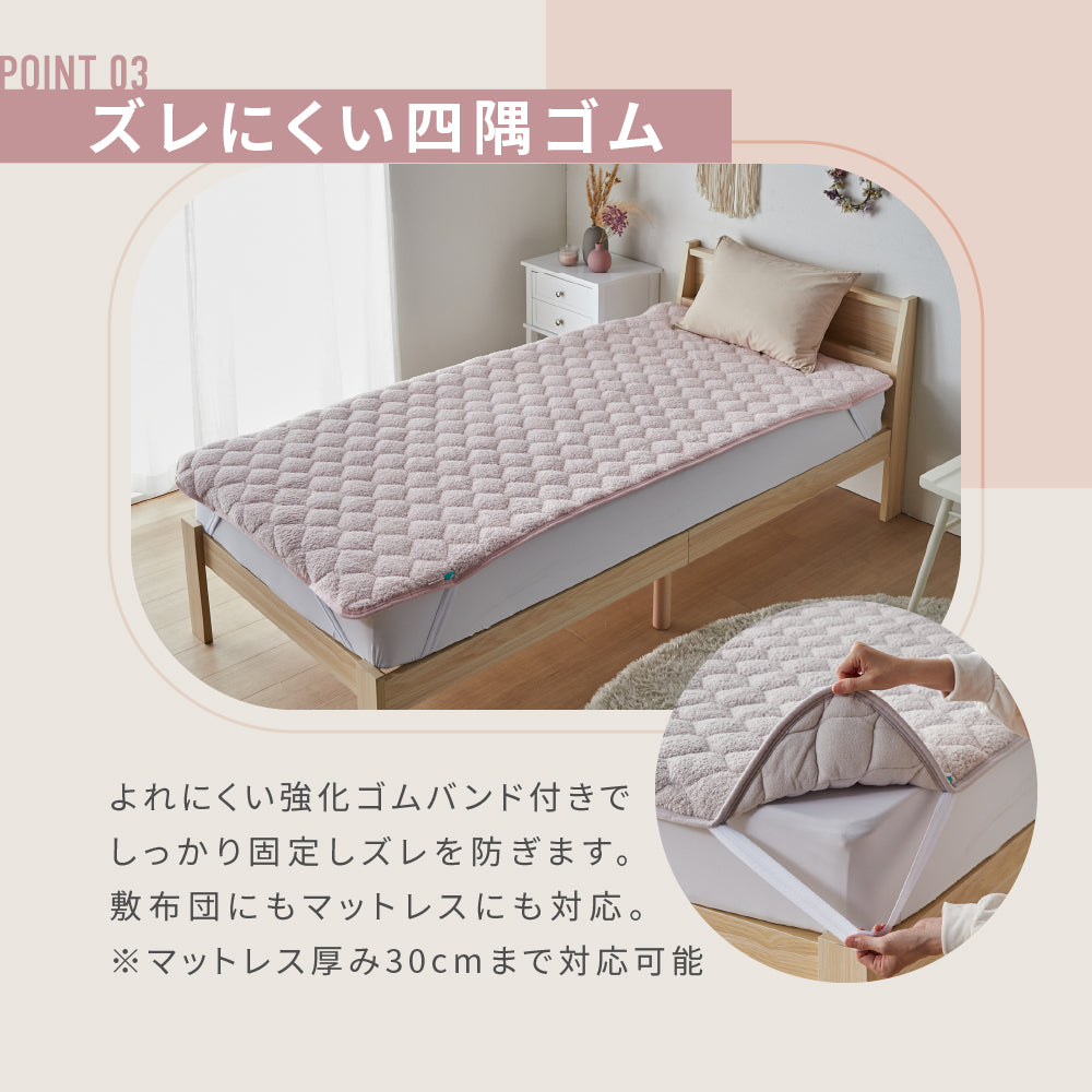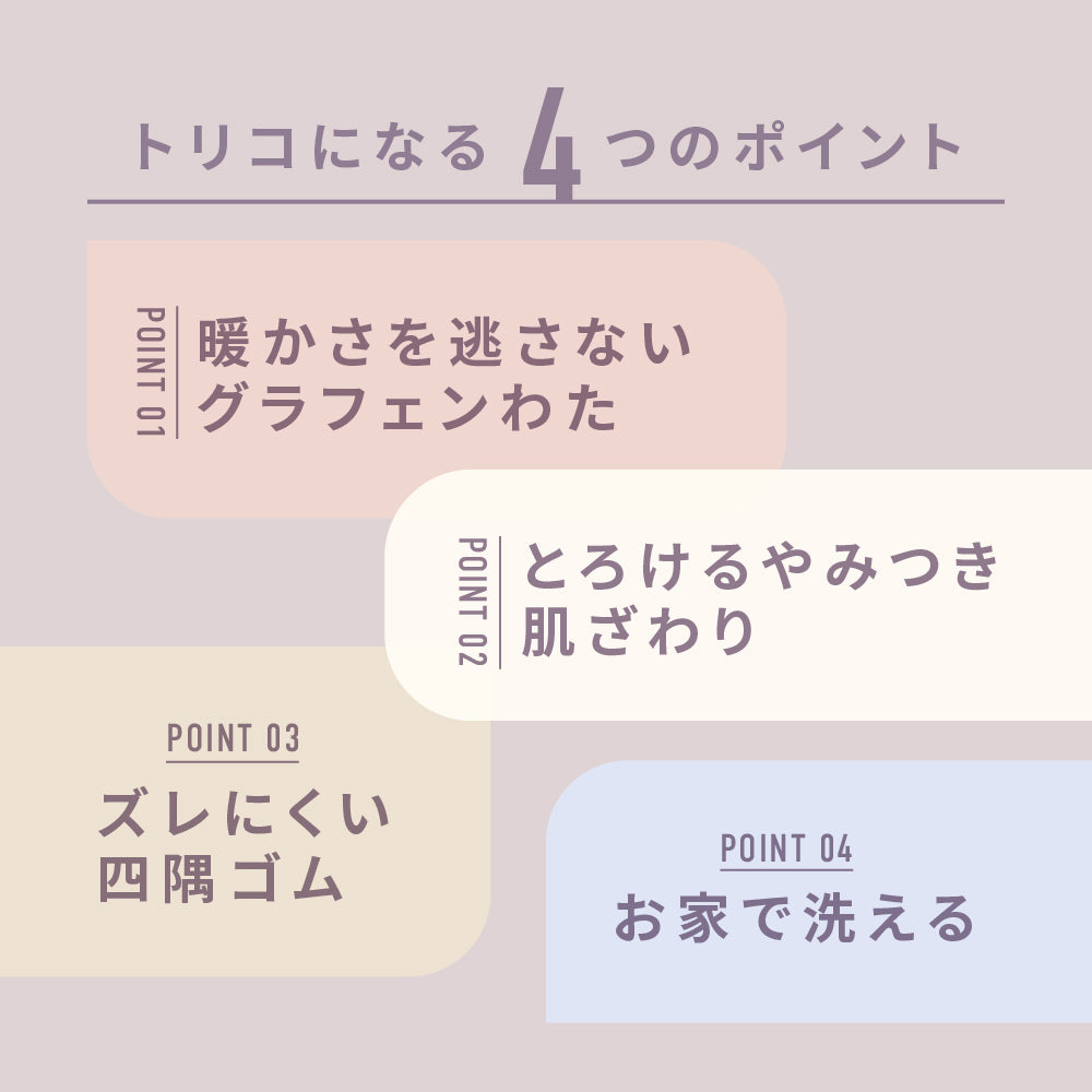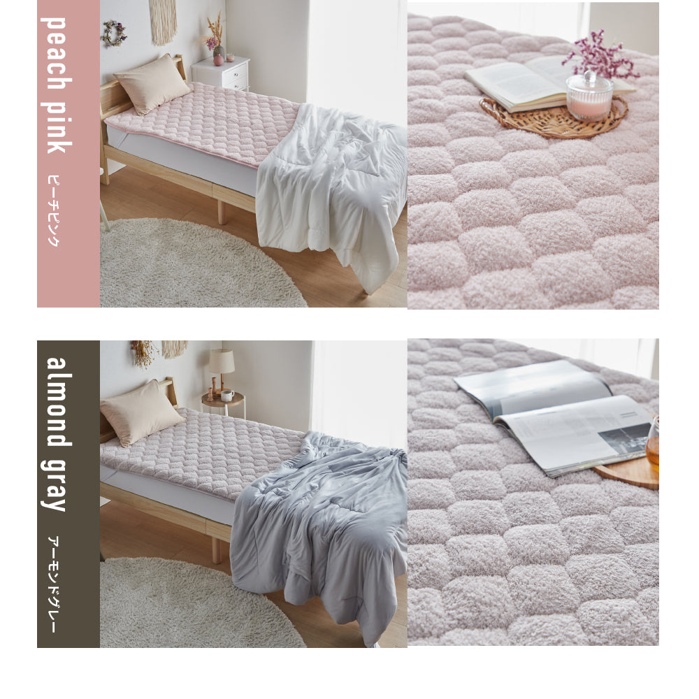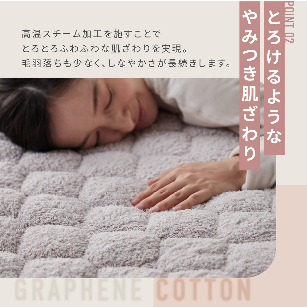 鋼の10倍の熱伝導率を誇るグラフェンわたを配合。 体温を蓄えてじんわり暖かさをキープします。 一度触れると「虜(とりこ)」になるほど、やわらかくてやさしい肌ざわりの、ふわふわ敷きパッド。マットレス厚み30cmまで対応可能です。