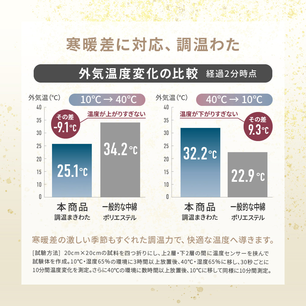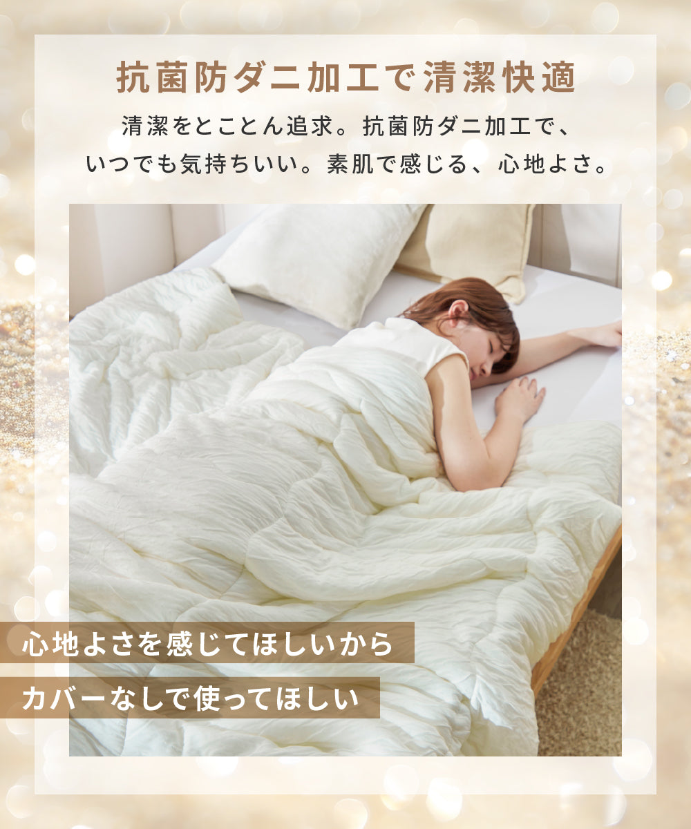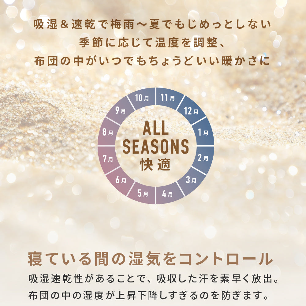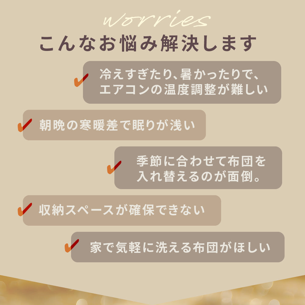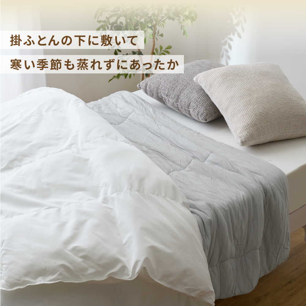天然由来繊維のレーヨンにシルク糸を織り込み、CICAオイル加工をプラスした、とろみのある、うっとりなめらかな肌触りの掛け布団です。調温わたが体温に合わせて快適な温度を保ち、吸湿速乾仕様で梅雨や夏でもじめっとしない。オールシーズン使える、大人可愛いご褒美ケットです。お家で気軽にお洗濯できます。