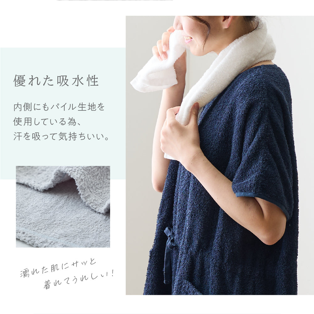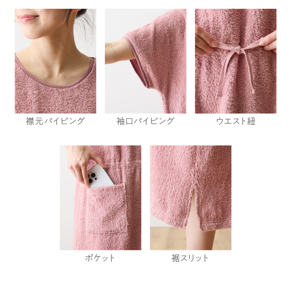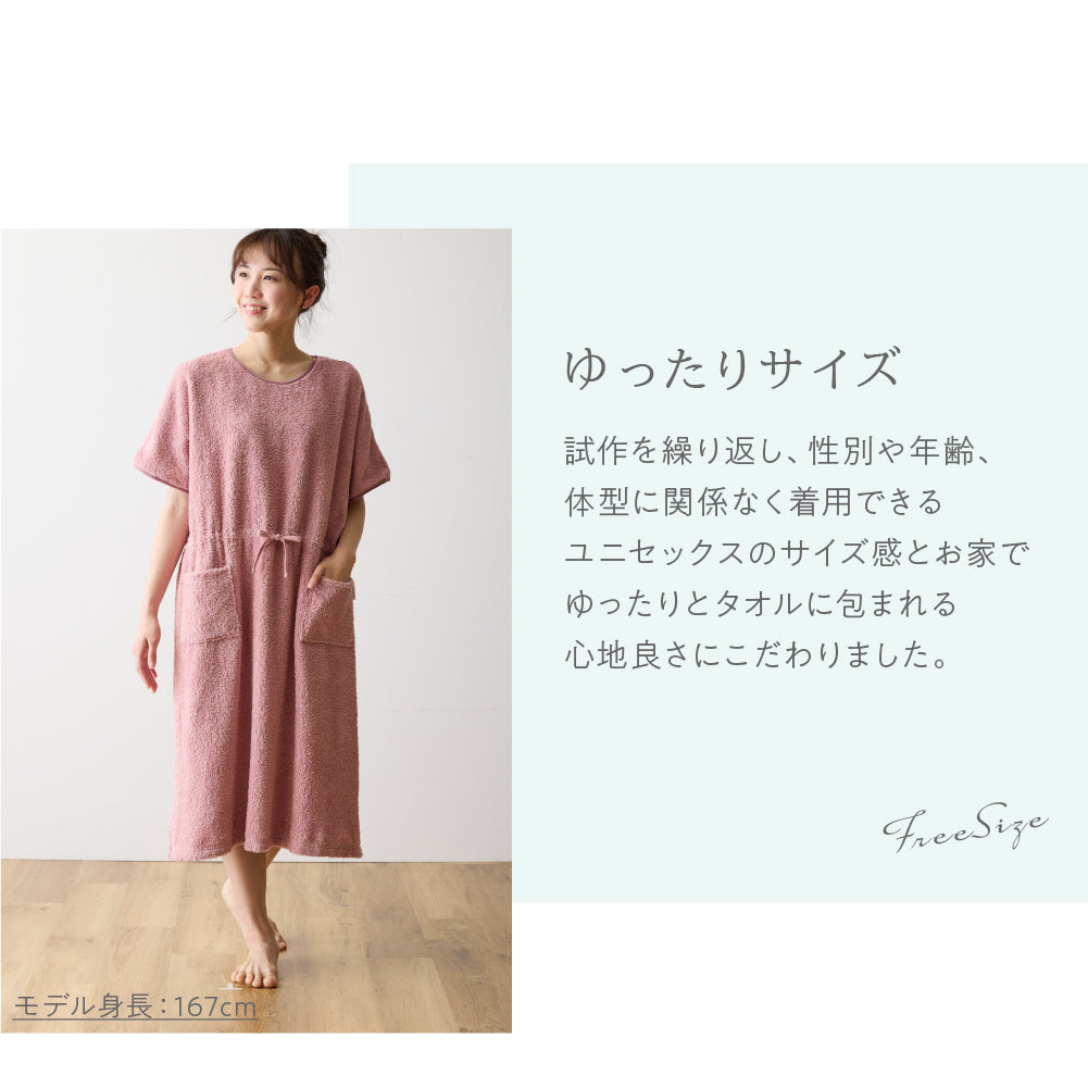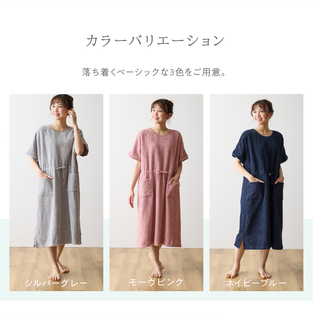 綿100%のロングパイルを採用し、着た時のタオルに包まれるような着心地を追求したタオル好きのこだわりパジャマワンピースです。ボリュームたっぷりの肌触りと抜群の吸水性で、暑い夜でも朝まで快適に過ごせます。毎日しあわせな肌触りで、リラックスタイムにもぴったり。