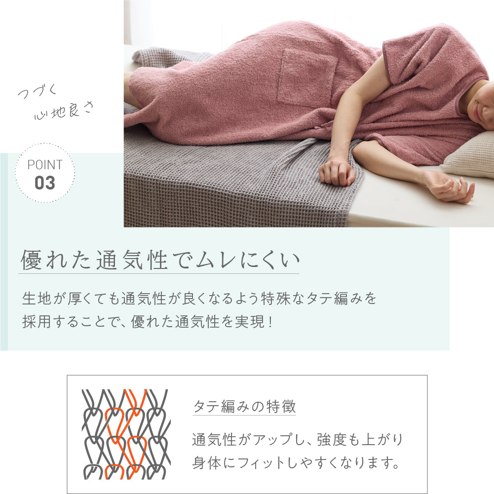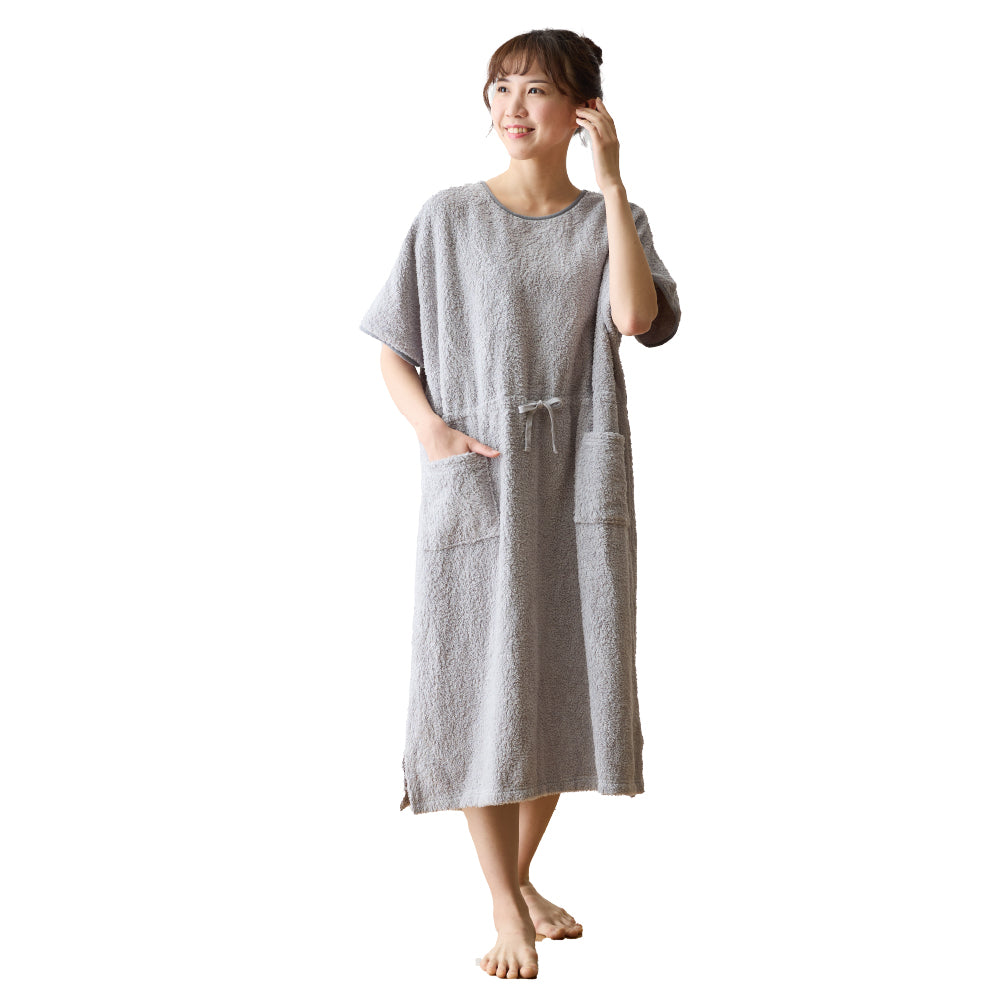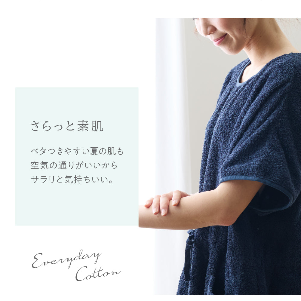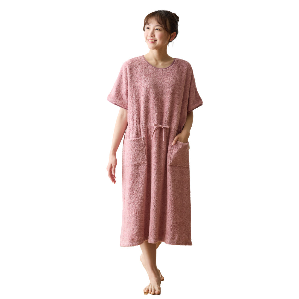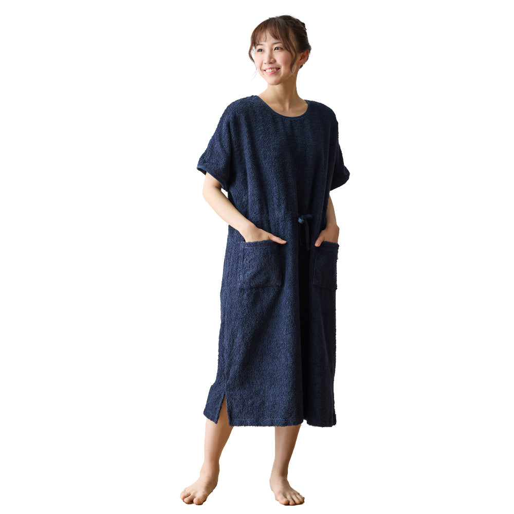 綿100%のロングパイルを採用し、着た時のタオルに包まれるような着心地を追求したタオル好きのこだわりパジャマワンピースです。ボリュームたっぷりの肌触りと抜群の吸水性で、暑い夜でも朝まで快適に過ごせます。毎日しあわせな肌触りで、リラックスタイムにもぴったり。